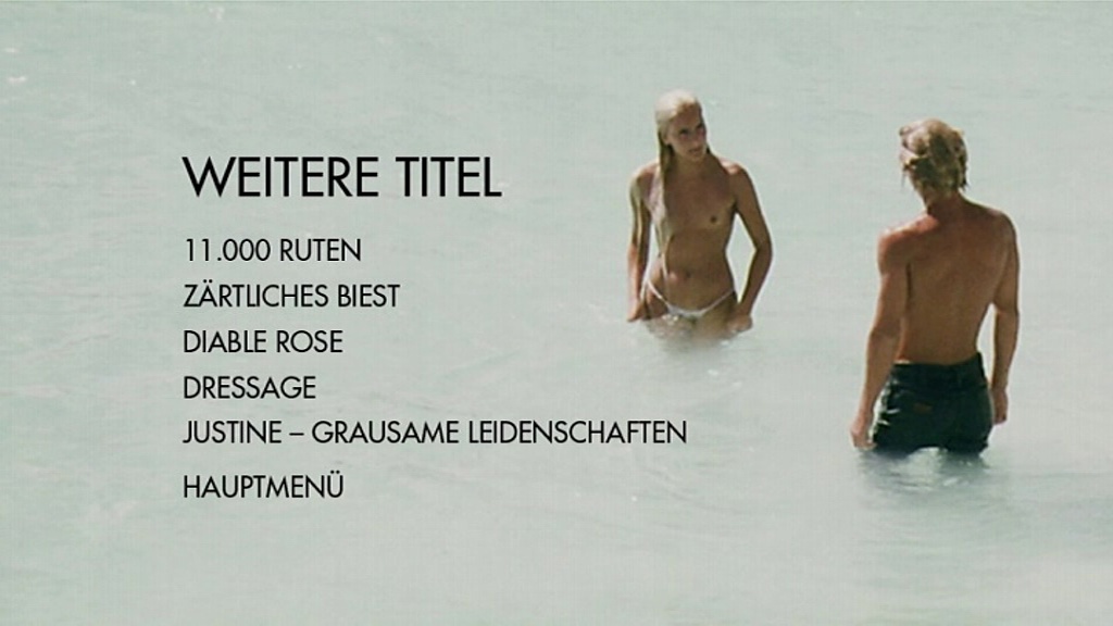 ![]() ![]() DVD front sleeve: Blue Island (GER) ![]() ![]() DVD back sleeve: Blue Island (GER) | DVD: "Blue Island - Salz auf nackter Haut" Donau Film Die Teenager Billy und Bonnie überleben als einzige einen Flugzeugabsturz. Mit letzter Kraft erreichen sie eine einsame Insel. Der schüchterne Junge ist fasziniert von dem frühreifen Mädchen. Zwischen den beiden entwickelt sich eine langsame zärtliche Liebe, sie lassen wie Adam und Eva in einem tropischen Paradies alle Hemmungen fallen. Doch dann aber merken Bonnie und Billy, dass sie nicht alleine auf der Insel sind… ![]() Country: GER Released: 28-APR-2017 by Donau Film Release #: 6733222 Duration: 84 min. (= 84:26 !) Aspect ratio: 1.88:1 (16:9 Anamorphic) Audio: Italian: Dolby Digital 2.0, German: Dolby Digital 2.0 Subtitles: German DVD discs: 1 Disc type: DVD5 Disc statistics: 720x576 (1024x576), 16:9, 25 fps, 2 audio, 1 subs Barcode: 4260267332221 Slipcase with removable FSK-sticker, Wendecover with movieposter design |