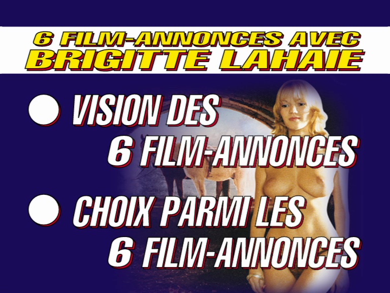 ![]() ![]() DVD front sleeve: Je suis à prendre (FRA) ![]() ![]() DVD back sleeve: Je suis à prendre (FRA) | DVD: "Je suis à prendre" Cinema X Français: Brigitte Lahaie BRIGITTE LAHAIE se surpasse véritablement dans ce chef d'oeuvre d'une perversité fascinante signé FRANCIS LEROI. En compagnie d'actrices aussi ravissantes que lubriques et d'étalons exceptionnels, BRIGITTE LAHAIE nous offre sa fabuleuse beauté et ses prodigieuses performances sexuelles dans une succession de situations hyper-excitantes. Un Film culte du Cinéma X Français à découvrir ou à revoir. Rating: X Country: FRA Released: 2010 by Alpha France Release #: 063 Duration: 74 min. (= 74:19 !) Aspect ratio: 1.71:1 (740x434) (4:3) Audio: French: Dolby Digital 2.0 Mono Subtitles: none Extras: Trailers with Brigitte Lahaie DVD discs: 2 Regioncode: 0 Disc type: DVD5 Disc statistics: 720x576 (768x576), 4:3, 25 fps, 1 audio, 0 subs Barcode: 3390667063003 |