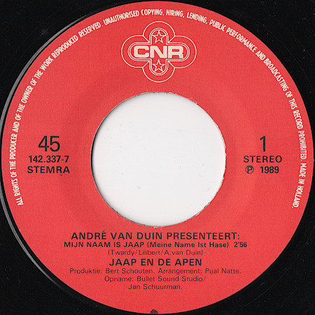 A Twiedel twiet 3:07 André van Duin als Piet de Kanariepiet B Chimpansee 2:26 André van Duin als De Aapjes